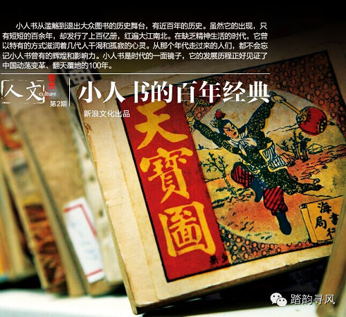 1920年代:《天宝图》:激发小人书时代的来临,在中国20世纪初的小人书专业画家中,最出色的是朱润斋。他擅于取材历史演义,并由自己编写,其代表作就是在上海滩风靡一时的《天宝图》。《天宝图》不仅给编绘者带来了巨大的名和利,还引起画界震动,引发趋之若鹜的模仿。