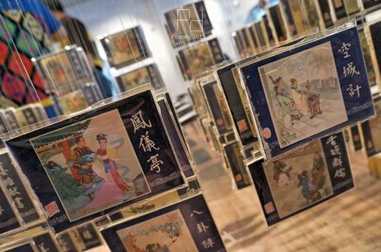 这次展览是一位设计师的收藏展,大部分的展品都是设计师从小收藏的连环画,内容从童话故事,到四大名著,再到英雄故事、样板戏等等,种类繁多。
