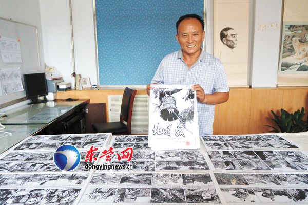 东营网讯 为了迎接抗战胜利70周年纪念日,一名51岁的石油人佘江林将《地道战》、《地雷战》、《铁道游击队》等抗战老电影改编成了手绘连环画,全部是用普通的钢笔和墨水绘制,由上千幅小画组成。以此纪念抗战胜利70周年。