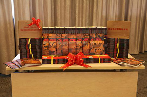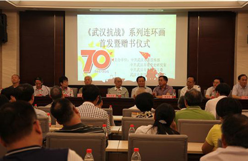 本网消息:2015年8月28日,为纪念中国人民抗日战争暨世界反法西斯战争胜利70周年,弘扬社会主义核心价值观,对青少年进行爱国主义教育,中共武汉市委党史研究室联合市委宣传部、市教育工委、市新四军历史研究会在武汉市常青一中隆重举办《武汉抗战》系列连环画首发暨赠书仪式,作为对中国人民抗日战争暨世界反法西斯战争胜利70周年的献礼。来自全市学校、企业、农村、社区、军营的十家单位代表接受了赠书;市委党史研究室、市新四军历史研究会、湖北美术学院三个创作单位当场宣布免费向武汉市各区中小学校赠送《武汉抗战》系列连环画3000套。