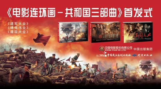 2018年1月12日上午,中国电影集团和中国出版集团旗下中国民主法制出版社联合举办的“电影连环画-共和国三部曲”图书首发式于国展中心隆重举办,中国出版集团公司党组成员、副总裁刘伯根,中国电影集团电影营销策划分公司副总经理张颖,中国民主法制出版社社长、总编辑刘海涛等嘉宾出席了活动,活动现场,中影集团与中国民主法制出版社进行了电影连环画项目战略合作签约仪式,此次签约标志着双方建立了稳固的战略合作伙伴关系,同时也标志着《电影连环画-共和国三部曲》正式出版发行。