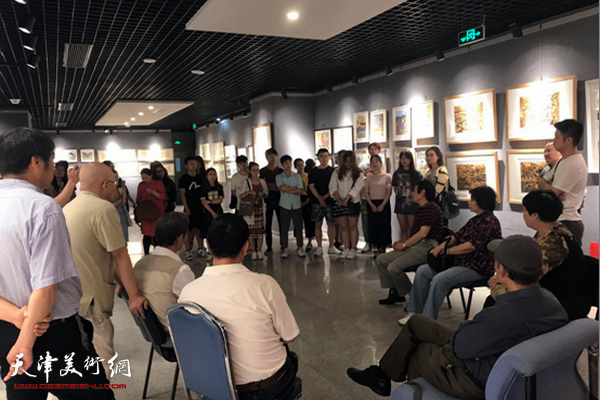 天津市美术家协会副主席琚俊雄,天津市美术家协会油画艺委会主任王书朋,著名画家何莉,天津市美术家协会连环画艺委会副主任、天津连环画出版研究会主任施振广,天津市美协插图艺委会副主任、天津美协连环画艺委会副主任、天津大学教授杨顺和,天津师范大学教授杨志刚,天津师范大学教授张立涛,天津师范大学教授李桂金,以及来自各大高校的师生出席了画展开幕活动。画展开幕式以交流讨论的形式展开,出席开幕活动的专家学者在艺术理论,绘画的理解和艺术语言的把握进行了深入地剖析。